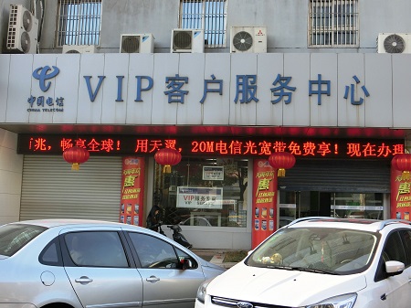 emoji教室のある華府世家の南側にあります。“中国电信”=チャイナテレコム、 “客户”=カスタマー、 “服务”=サービス、 “中心”=センターです。英語の直訳ですが・・・